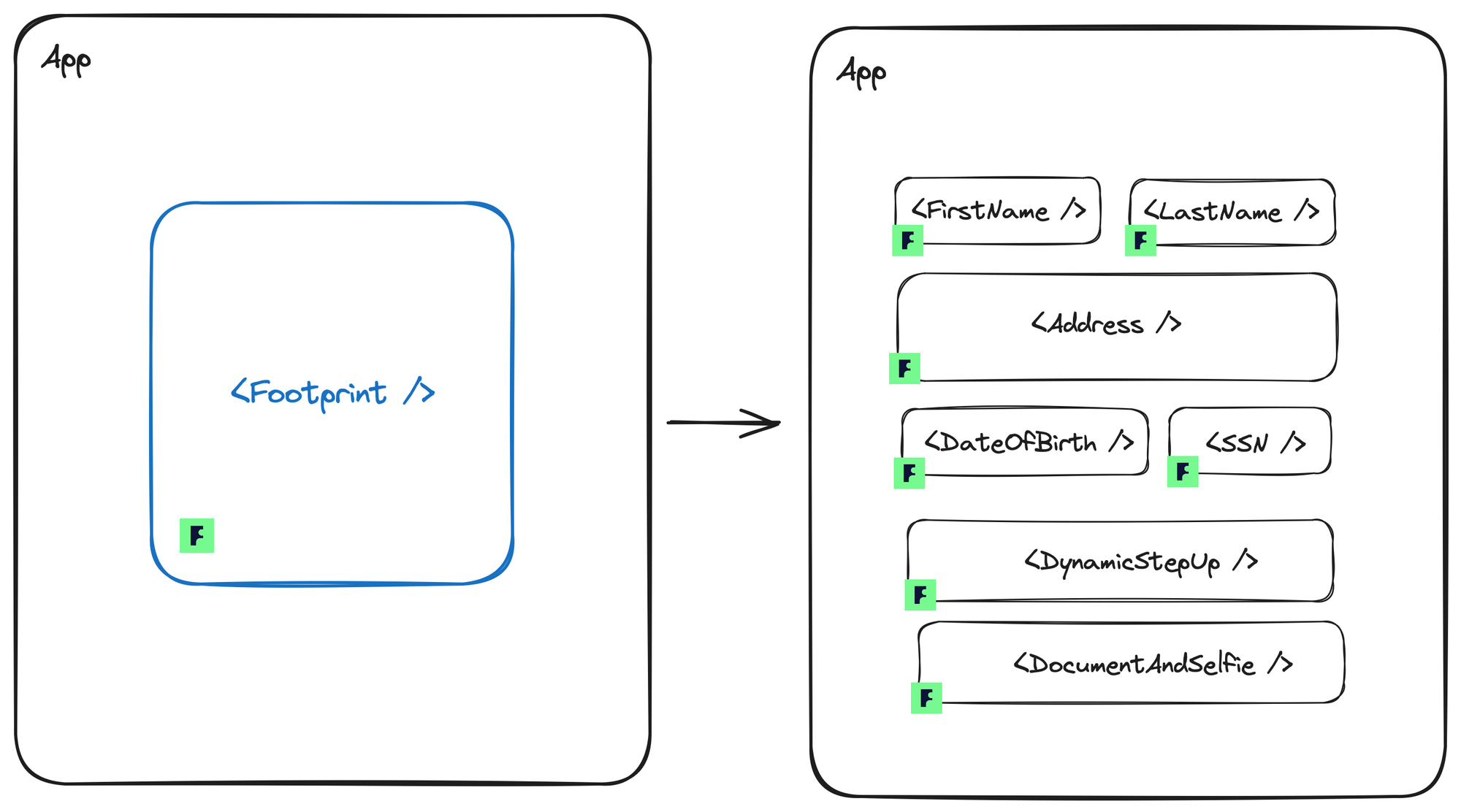 The Footprint SDK needed to get smarter — so we deployed what we called “bootstrapping” onboarding data. Now you can collect whatever subset of attributes you want and simply pass them to the Footprint SDK upon launch. The Footprint embedded experience would start but would intelligently hide/fill-in the parts of the identity verification experience that was previously already hydrated by the bootstrapped data. In some sense, this provides you with the best of both worlds but it comes at a cost.